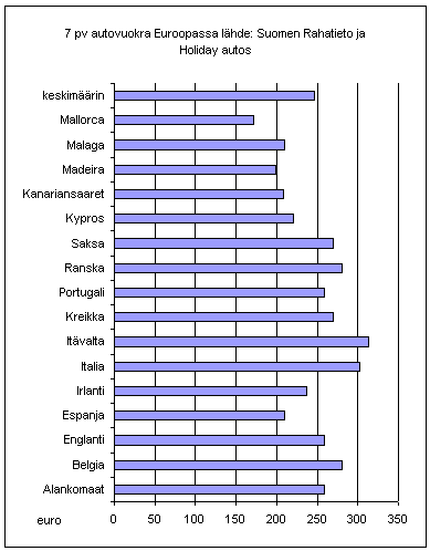 autovuokrauksesta saa maksaa 50 - 100 euroa enemmän hieman