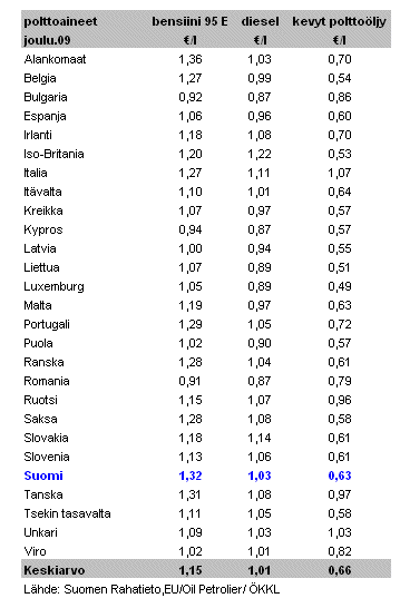 Polttoaineiden hinnat joulukuussa 2009