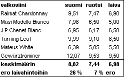 keskikurssilla. Vertailussa vaikuttaa siis aina