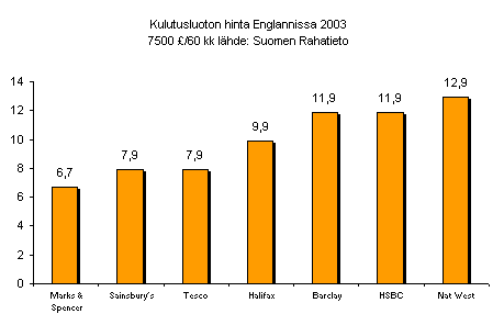 enemmän kuin Suomessa ja isot pankit ottavat paljon tukevamman hinnan kuin kauppaliikkeiden omat