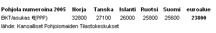 Alla olevassa taulukossa Norjan, Suomen ja Tanskan luvut
