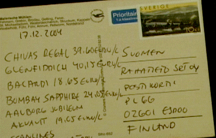 Juomahintoja Puttgarden-Rödby. Chivas Regal 39,60 euro/l