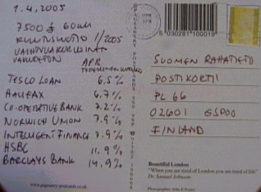 7500 £, 60 kk kulutusluotto 1/2005 (vaihtuvakorkoinen vakuudeton) todellinen vuosikorko.