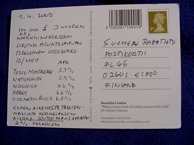 Postimerkkien osuus oli 5.70 euroa.(17.1.2005)