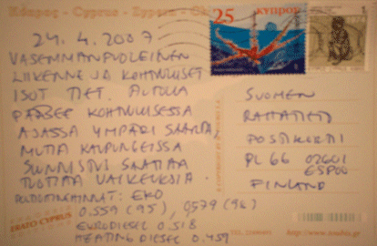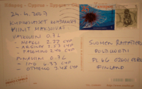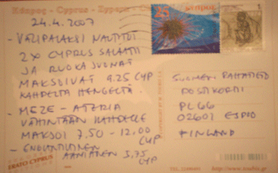 0,26 cyp ja postikortti 0,25 - 0,30 cyp (1 cyp on noin 1,8 €).