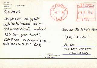 Hotellissa 15 minuutista veloitettiin 150 bef.(5.8.2001)