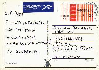 Tunti internet-kahvilassa Hollannissa maksoi Arnhemissä 10 guldenia. (6.8.2001)