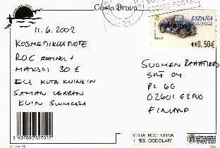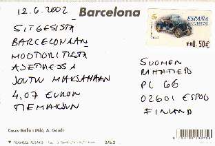 Sitgesistä Barcelonaan moottoritietä ajettaessa joutuu maksamaan 4,07 euron tiemaksun.(12.6.2002)