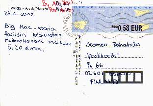 Big Mac -ateria Pariisin keskustan McDonalsissa maksoi 5,20 euroa. (25.6.2002)