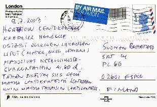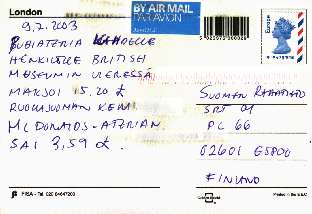 Postikortit maksoivat yleisesti 10 penceä. Postimerkki Suomeen maksaa 53 penceä.