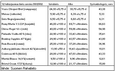 hinnat on muutettu euroiksi 20.8.2002 kurssitasolla.